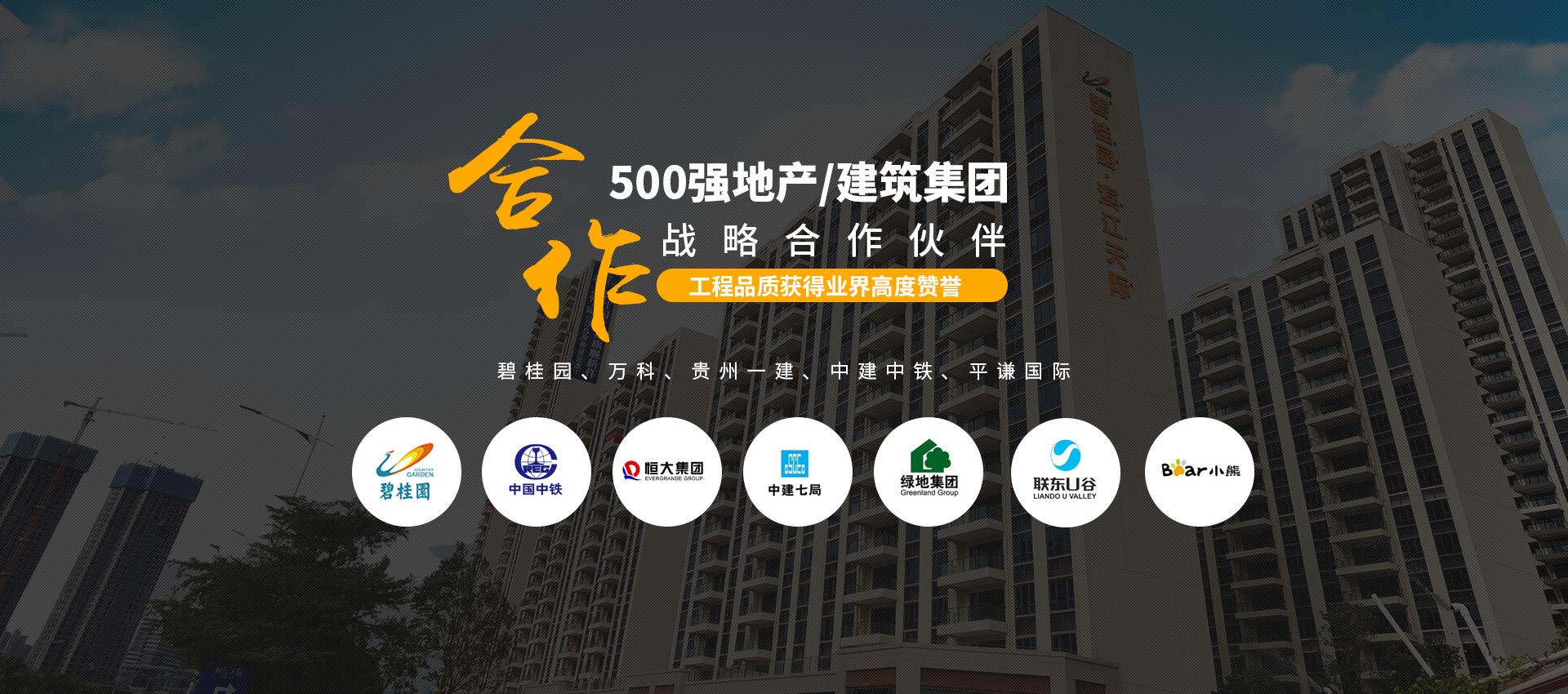 500強(qiáng)指定合作:與“碧桂園、萬(wàn)科、貴州一建、中建中鐵、平謙國(guó)際、恒大、雅居樂(lè)”等地產(chǎn)/建筑集團(tuán)建立長(zhǎng)期的戰(zhàn)略合作關(guān)系。